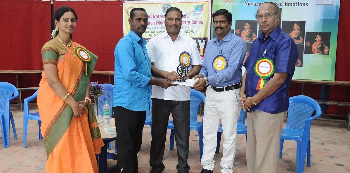 In the recently held 21st Annual Day celebrations of Shri Natesan Vidyasala Mannivakkam, the Chief Guest Shri. Loganathan, Inspector of Matric Schools, Kanchipuram and Shri. Kribakaran, Deputy Inspector of Matric Schools, Kanchipuram, gave away the Good Persons Award instituted by Shri Natesan Vidyasala to Smt. R. Reema.